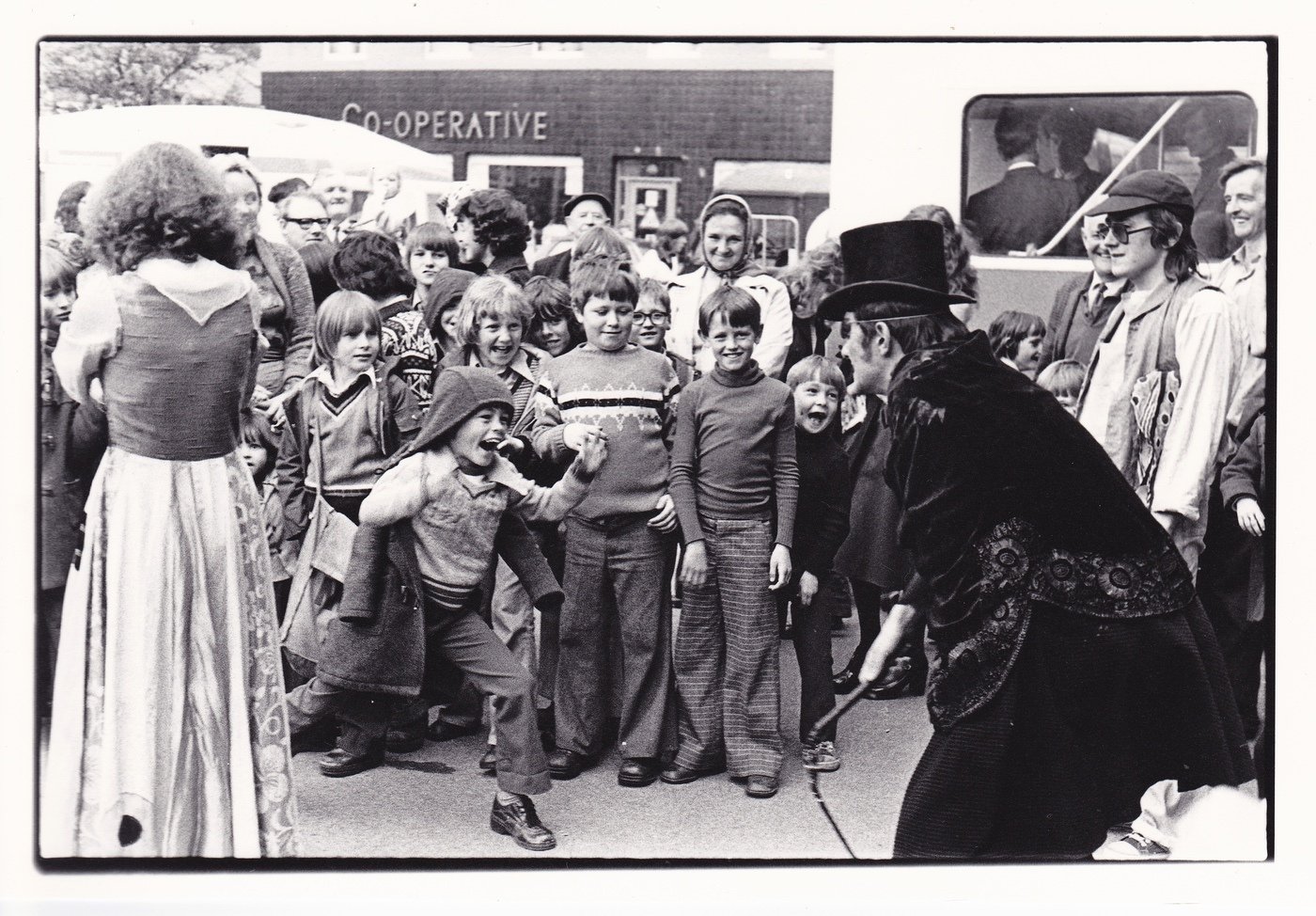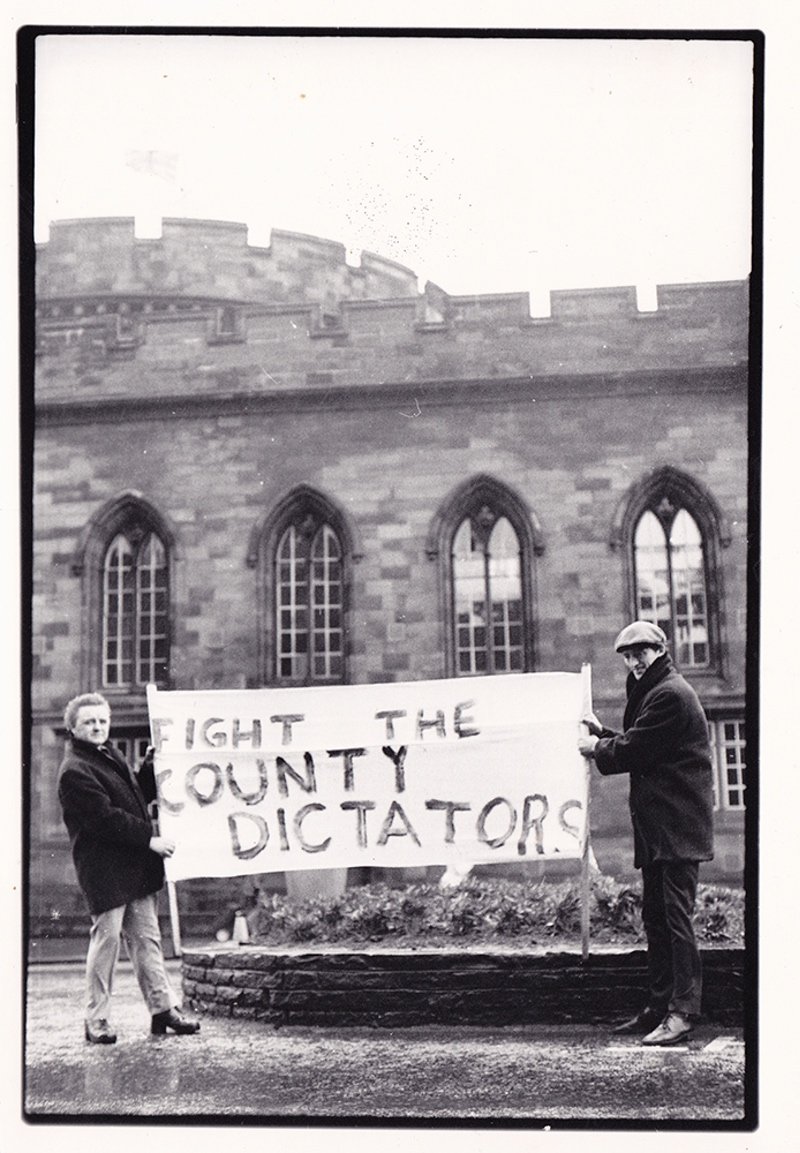 7:84 a radical leftist theatre group, (name derived from the fact that 7% of the world own 84% of its wealth), wrote this play/theatrical experience based on the "demolition" of the CDP & its projects by the combined forces of the Conservative Party-dominated Cumbria County Council hand in hand with the Freemasons in the town. It was performed in the Civic Centre. To the right is Brian Hibbard, later to be front singer in The Flying Pickets and to star in the soap opera Coronation Street.